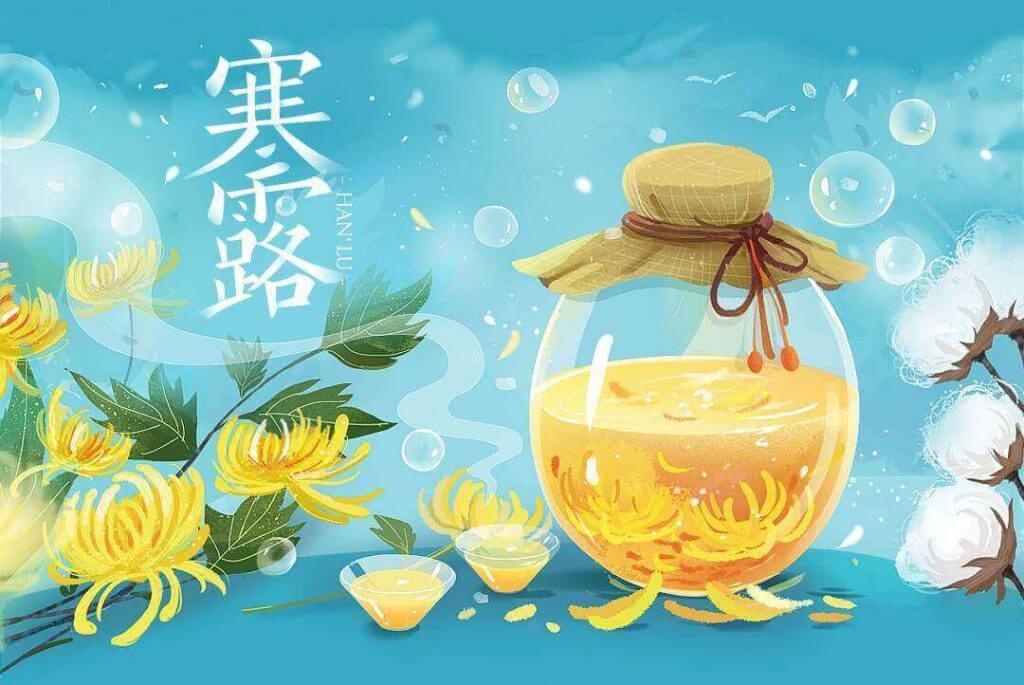物候:寒露之日鸿雁来宾,又五日雀入大水为蛤,又五日菊有黄华。